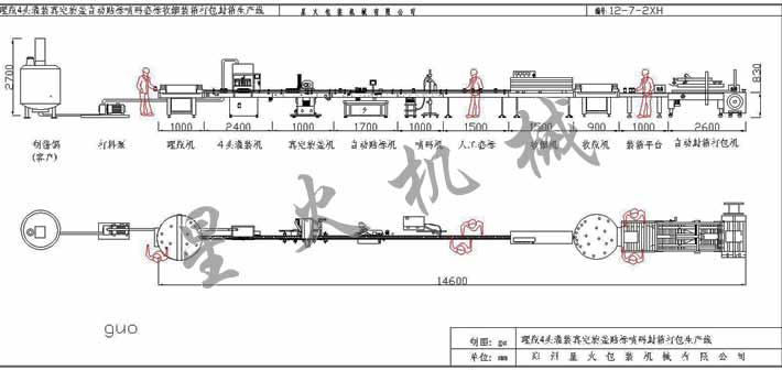 --理瓶4頭灌裝真空旋蓋自動貼標噴碼套標收縮裝箱打包封箱生產線--