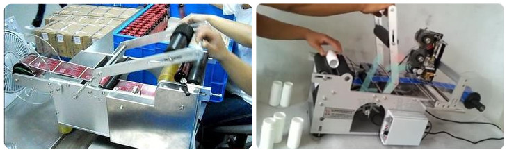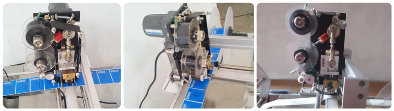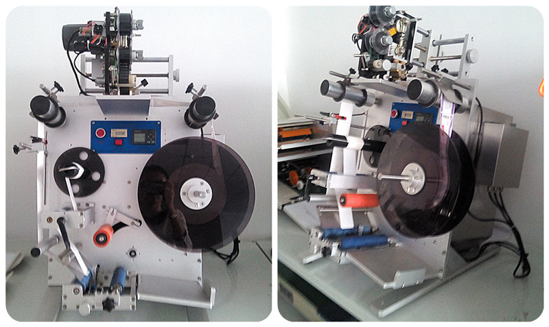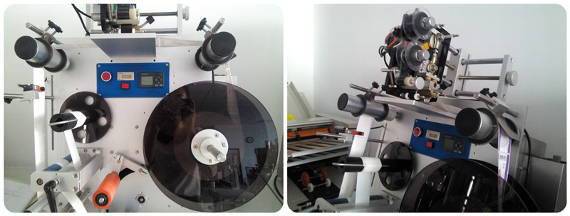 該貼標機是一種與打碼裝置配合的設備,當然也可以單獨貼標使用,圖左圖就是單機作業的展示,右圖則是裝有打碼裝置完成貼標生產的展示。配有打碼裝置的洗發水貼標機可以完成貼標和打碼兩種工作,對產品生產的更有利。